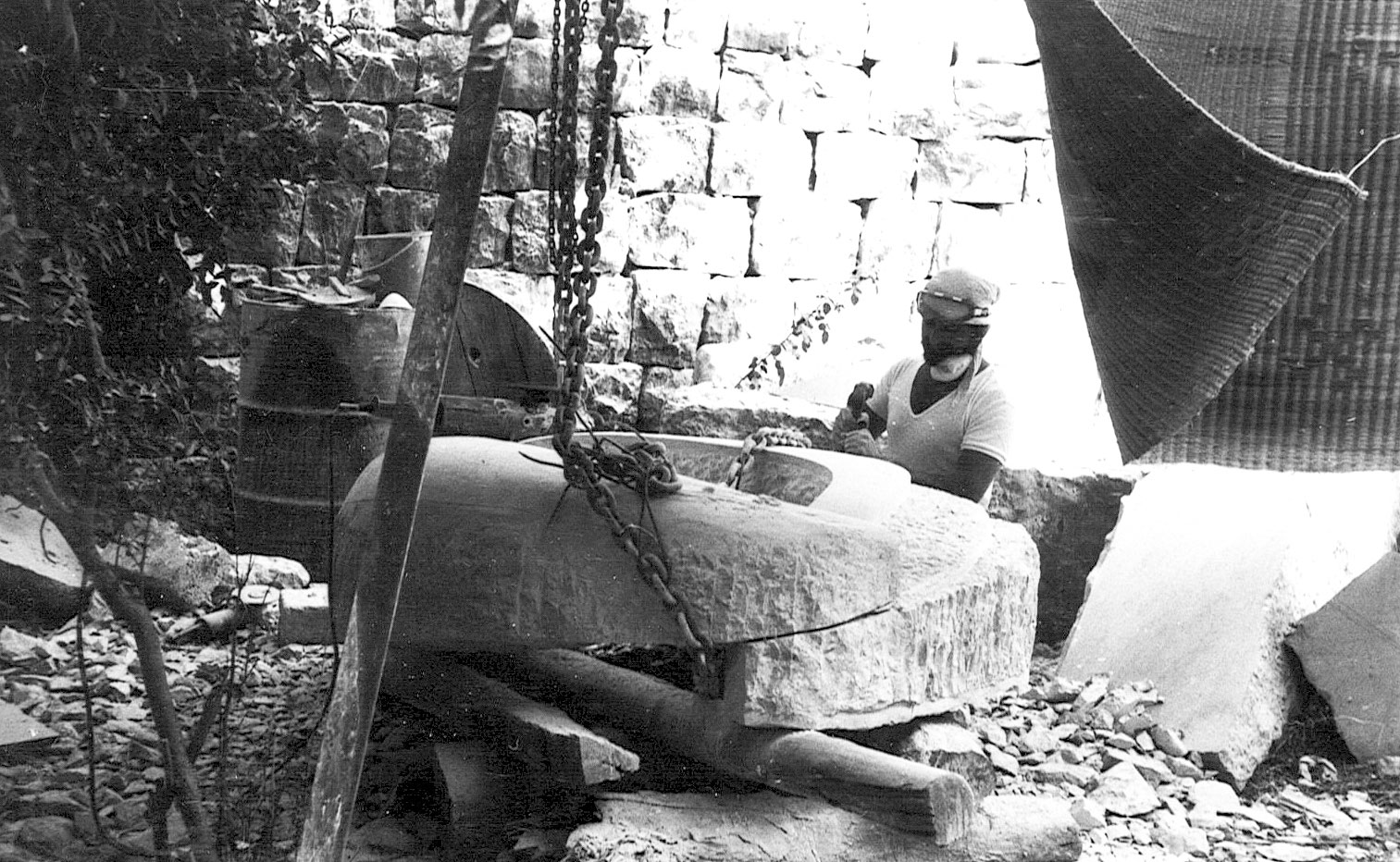 I cannot forget when the sledgehammers of Abou Youssef, Abou George, Mu’allim Hebbo and Mu’allim Abdo smashed down huge rocks. When I was small, I used to watch these quarrymen extracting building stones from my brother Mansour’s quarry. I was a boy of 10 years old or less. I would carry my books and study while watching these powerful men subtly take out a giant rock from the core of the earth. They would move away the soil around it, estimate its measurements and study its layers and strata (a stratum is the line that separates geologic layers in rocks) in order to know how to install wedges successfully. A “separation” wedge is a horizontal hole that quarrymen dig using a “cutter”; it’s a hammer with a head like that of a chisel. It pierces a rock and leaves a space for wedges to pass through horizontally or vertically to break the rock in two. The quarryman separates the rock using the huge lever. They then cut it into several chunks of different sizes and measurements, depending on the usage of each. The big ones are used for polls and sills. The medium ones for corners and lower sills of windows and doors, and the small ones for stones of wall pillars.