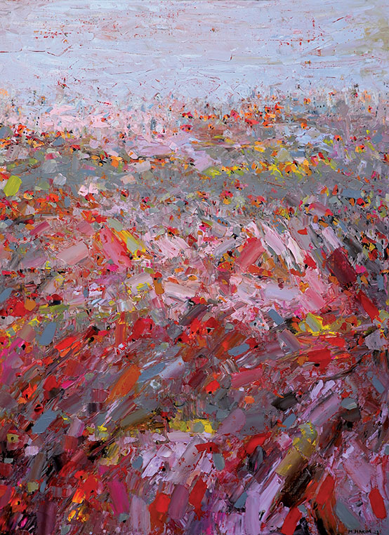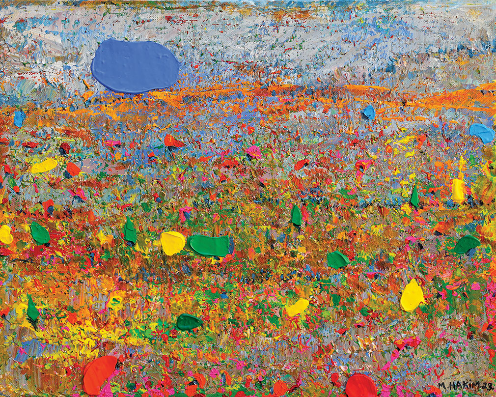 Françoise Barbe-Gall, the French historian and art critic writes in her introductory text to the exhibition: “We will not see the end of the history that is being played out here. Because each painting by Maroun Hakim accompanies its flowering, letting himself be carried away and surprised by the vitality of nature that he tirelessly discovers...”.